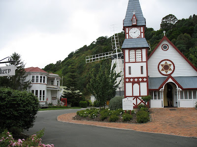 Ouch.  I must be getting old since I am aching and sore from hiking and kayaking.  The weather changed in Nelson and was windy and cold today on New Year's Eve.  After sleeping off the soreness, we went out for a slow and quiet stroll around Nelson.  Our first stop was Founder's Park, a small series of historical buildings depicting the early life in Nelson.  The weather might have contributed to the lack of visitors in the park, because it felt more like a ghost town than anything!  It was kind of strange walking in the little buildings, completely empty, and looking at the mannequins and old artifacts.  We made the most of the adventure, taking silly pictures in lots of the displays.  We finally settled for lunch at the only cafe there, that housed New Zealand and Australia's oldest organic brewery.  We had a couple of burgers, sampled the beers, and moved on.